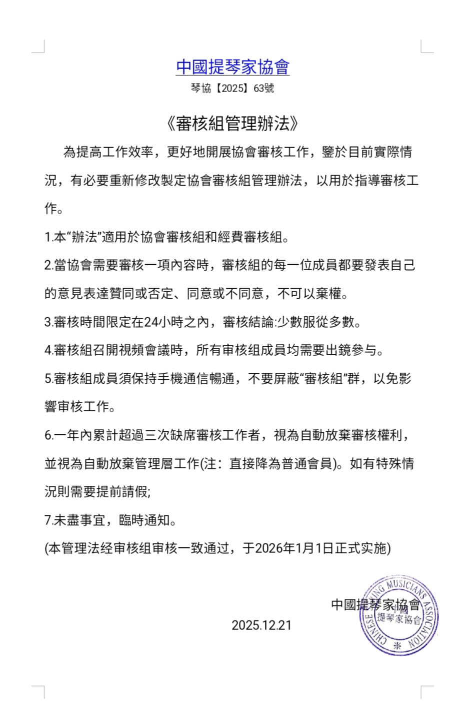 中国提琴家协会63号文件(审核管理法新修订草案)